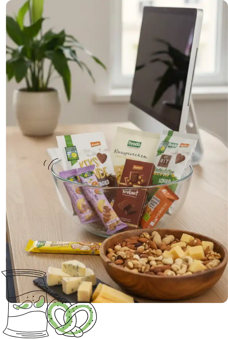 Gesunde Snacks gegen das Nachmittagstief. Wenn im Büro der Kuchen ruft, liefert Officeguru die bessere Wahl: frische, ausgewogene Snacks von Profis – für mehr Energie und Abwechslung im Arbeitsalltag.
