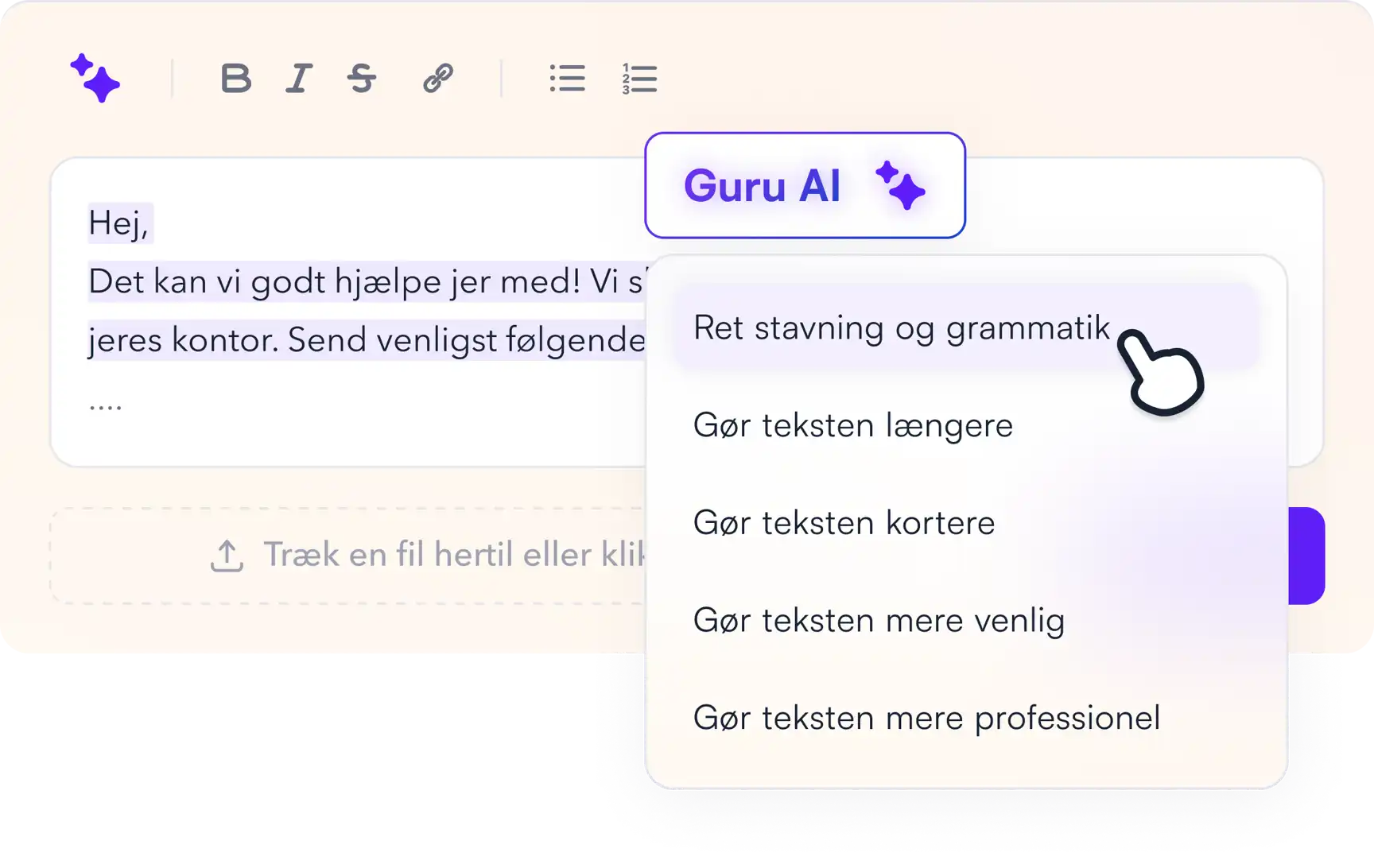 Tænk ikke så meget over hvordan du formulere dig, det hjælper Guru AI dig med