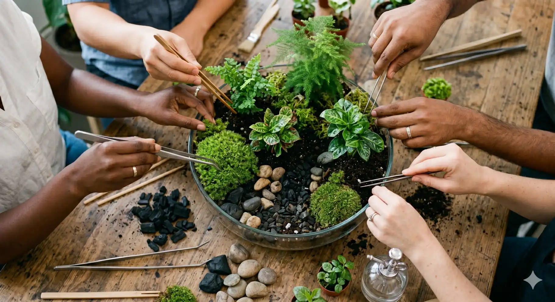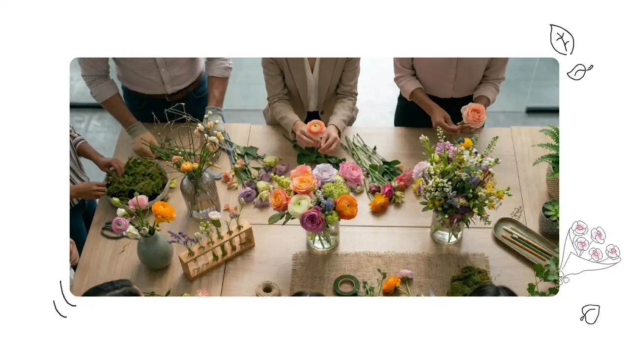 Berlin offices are full of people whose hands spend all day on keyboards. We bring a florist directly to your Berlin office - seasonal blooms, living plants, dried botanicals and zero agenda. Everyone makes something that did not exist an hour ago. A bouquet, a potted plant, a small terrarium built from scratch. No experience needed. Just a cleared table in your Berlin office.
