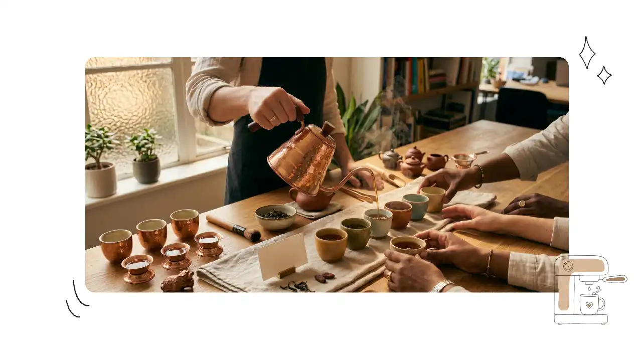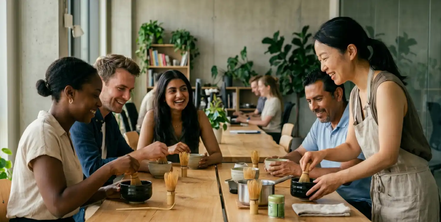 Your Berlin team gathers, slows down, and tastes something properly for the first time. No skill required. Just curiosity. We bring specialist coffee, tea and matcha tasting sessions directly to Berlin offices: a single-origin bean, a ceremonial matcha ritual, a rare loose-leaf tea and the story behind every cup.
