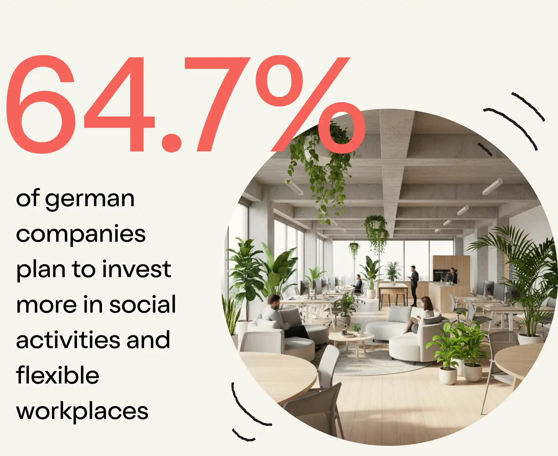 According to the report, 64.7% of German companies plan to invest more in social activities and flexible workspaces in the future. Even small touches - like music, shared breakfasts, or open lounge areas - help strengthen relationships and improve well-being.